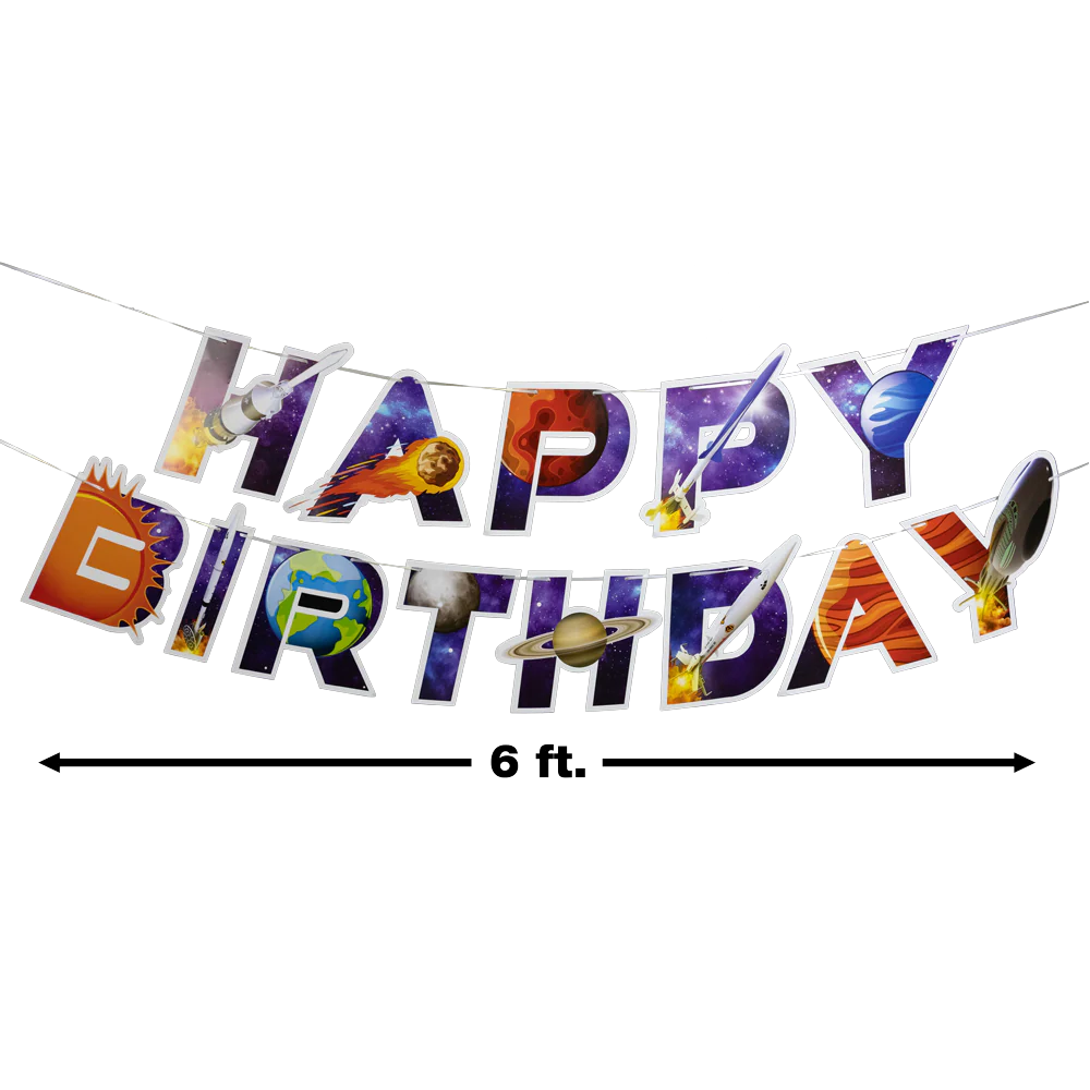 - 3 Balloons and 3 Space Candles — to set the scene and top off the birthday cake with a cosmic touch