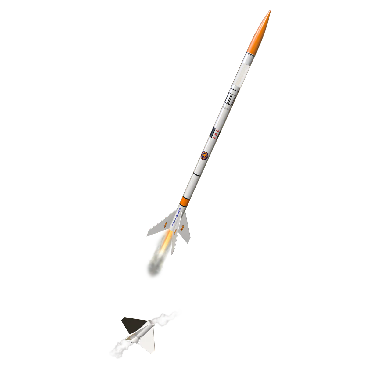 The Astron Shrike flies on standard 18mm Estes engines, with a range of booster and upper-stage combinations. Recommended engines include A8-0, B6-0, and C6-0 for the booster, and A8-3, A8-5, B6-6, C6-5, and C6-7 for the upper stage. With proper setup, you can enjoy dramatic two-stage flights followed by smooth recoveries under the 12 inch parachute.