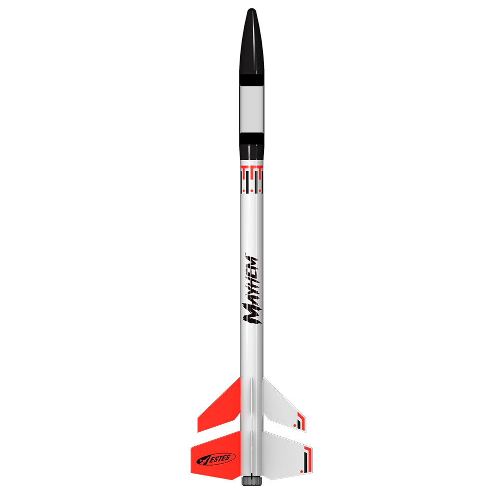 Whether you're launching solo or showing off at a club event, the Mayhem™ brings energy, excitement, and altitude to every flight. With striking graphics, dual-stage capability, and reliable recovery, it’s a standout addition to any rocketeer’s fleet.